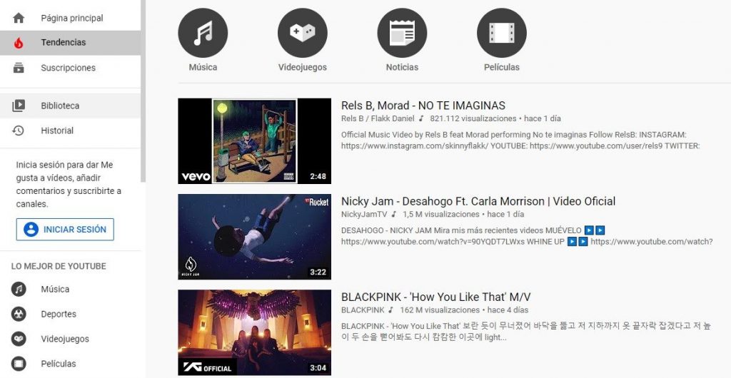 Como te lo imaginas, en esta sección estarán todos aquellos videos que están obteniendo la mayor visualización dentro de YouTube tanto en la región del usuario, así como también, aquellas tendencias de videos a nivel mundial.